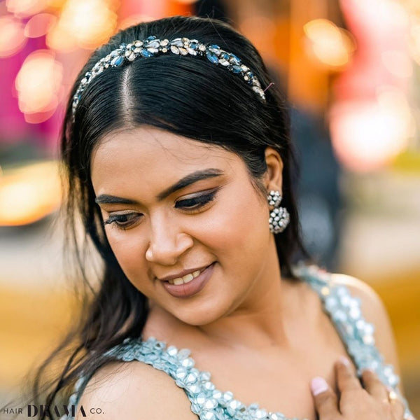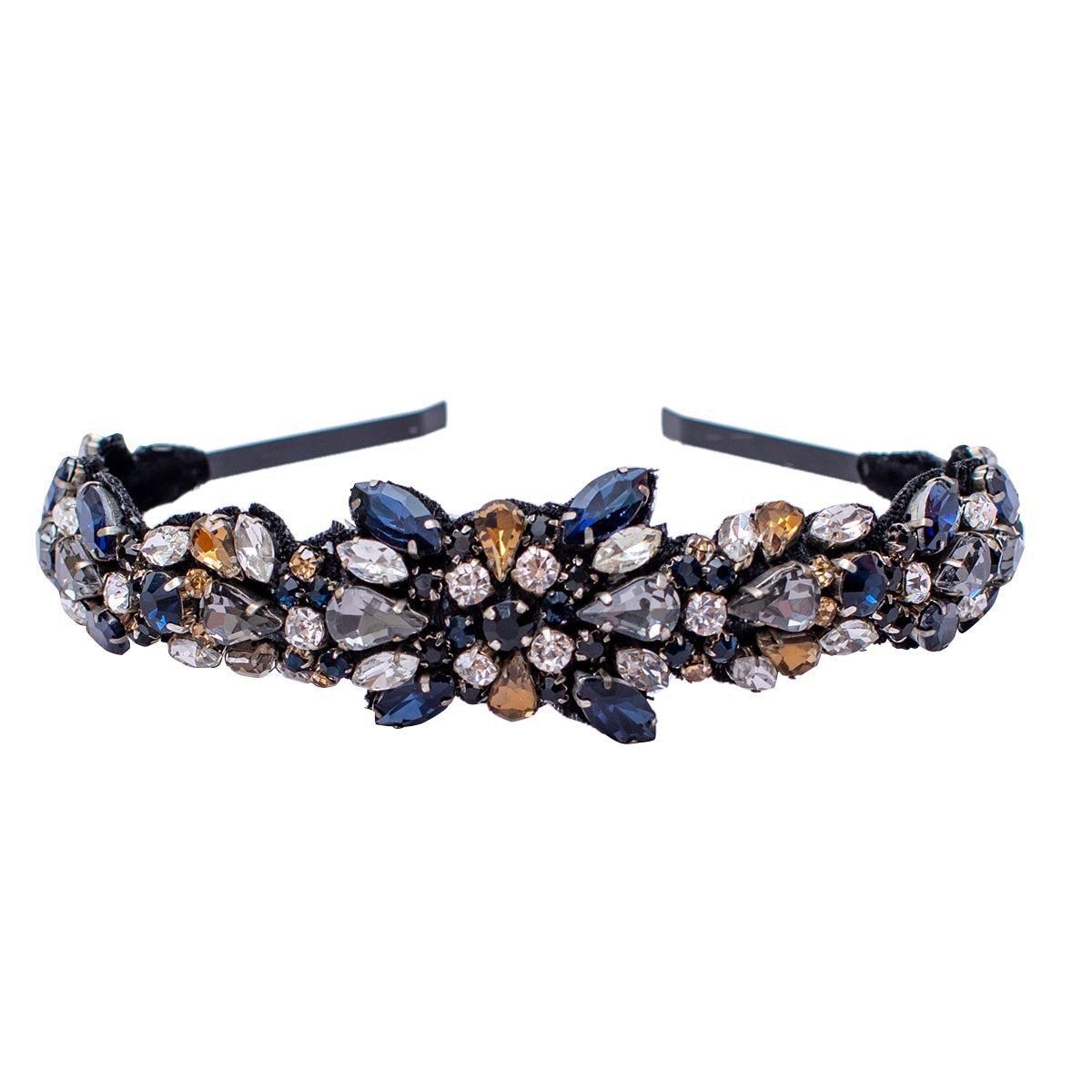 • This headband has a combination of dark blue, nude and silver crystals and is handmade.
