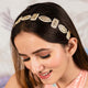 Gold Plated Hair Band for Women with Pearls, Kundan and Champagne-Gold Polki