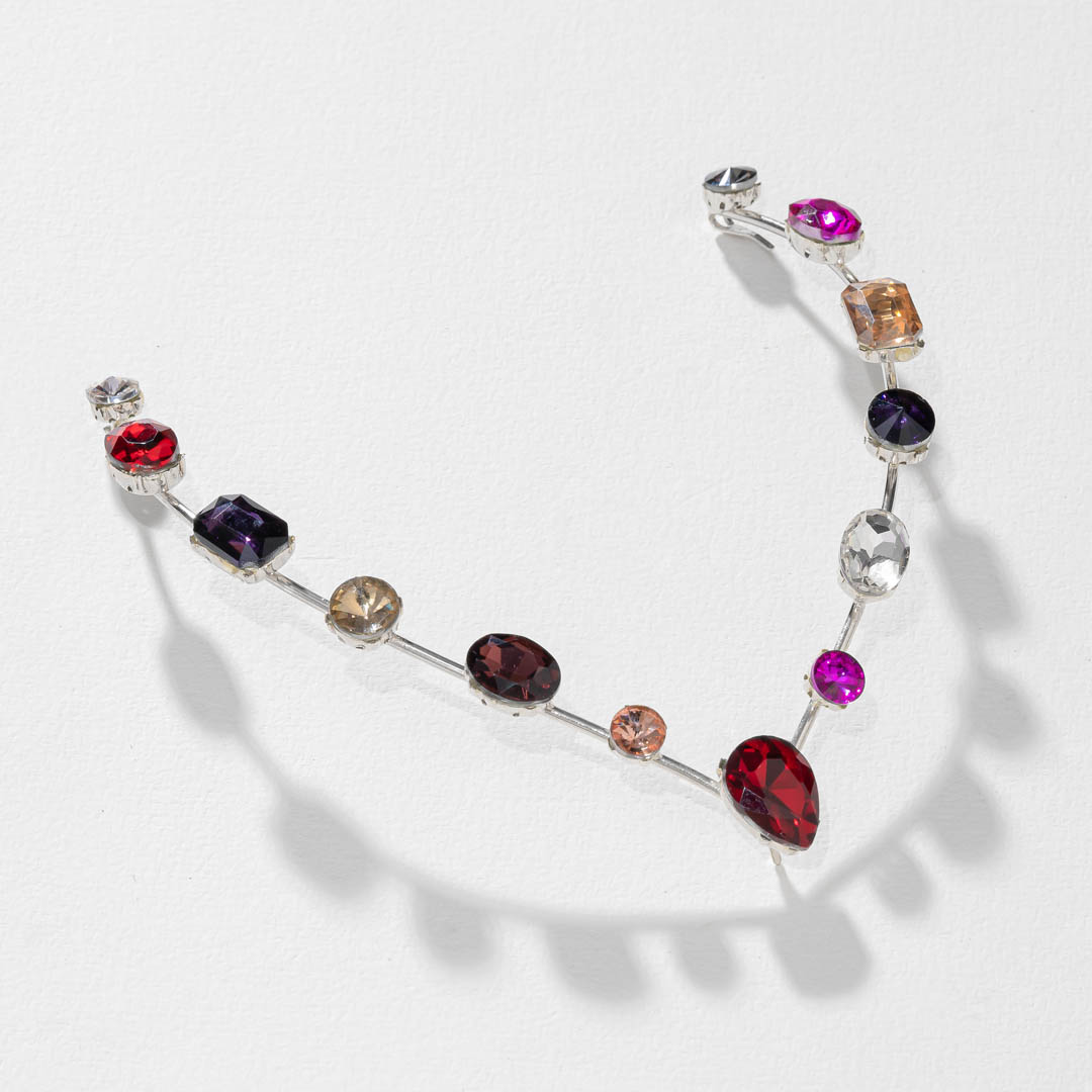 Get ready to make a statement with our Crystal Halo, our vibrant headpiece designed like a tiara to be worn at the back of your head.