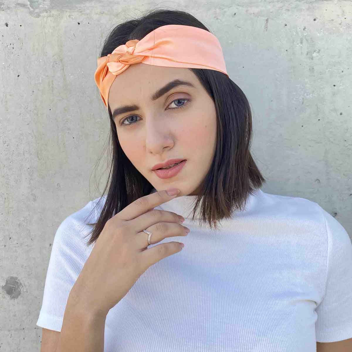 Silk Satin Braided Stretch Headband - Peach & Orange