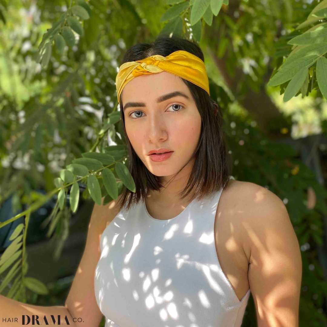 Silk Satin Braided Stretch Headband - Set of 2 - Mustard & Gold