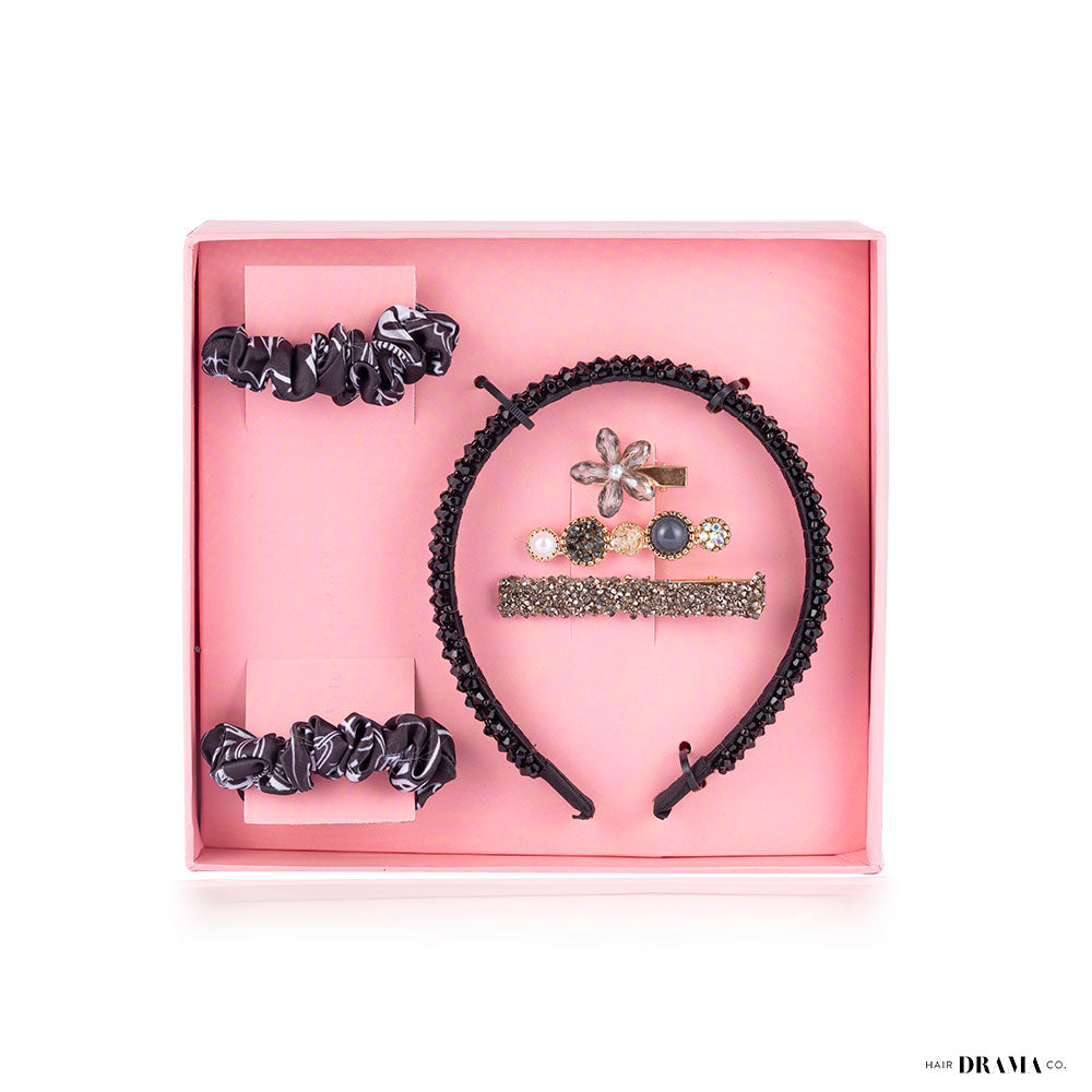 Halloween Gift Box with 1 Crystal Beaded Hair Band, 3 Crystal Hair Pins & 2 Scrunchies