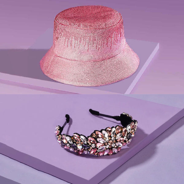 All that Glitters Gift Box with 1 Crystal Hair Band & 1 Crystal Bucket Hat - Pink